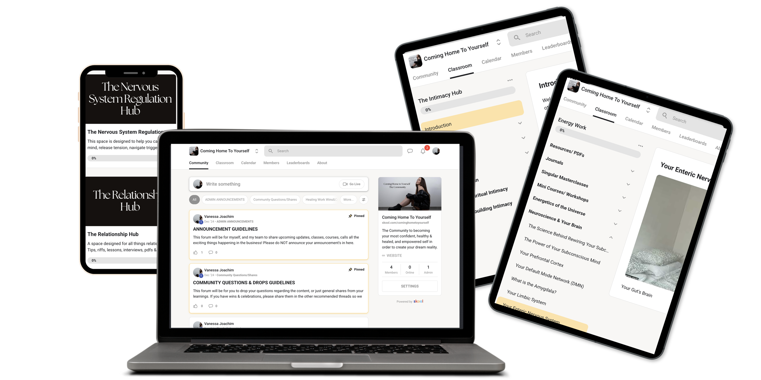 Every month, you’ll receive new, high-value content, no extra fee! From healing practices to energy practices, you’ll have access to many resources like meditations, visualizations, NSR exercises, breathwork, sleep tracks and more, all personalized to YOU, that guide you on your journey toward deep transformation and aligned living. You will not find this anywhere else. All of this is easily accessible on the SKOOL app, available anytime via your phone or laptop.