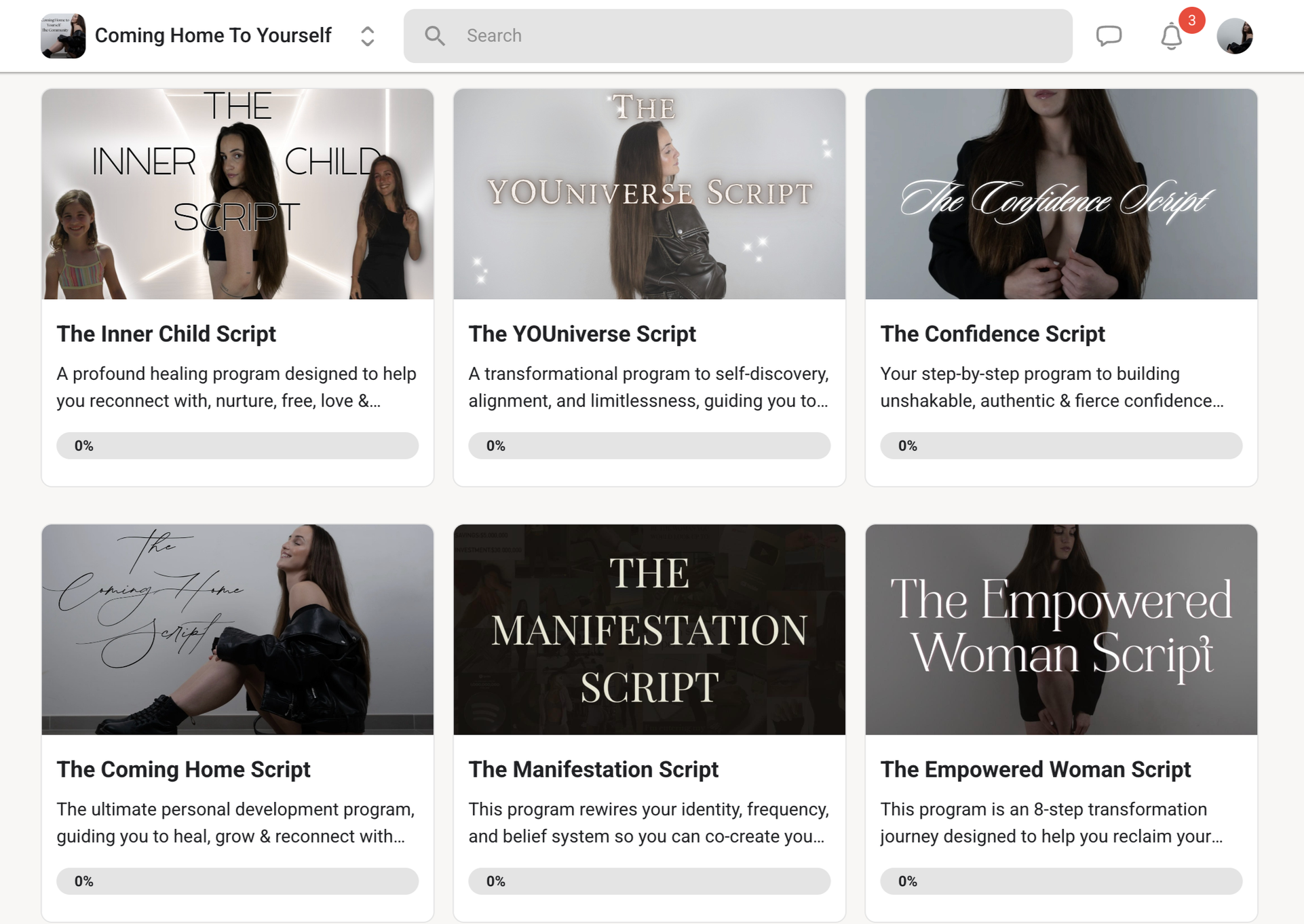 This platform is like nothing you’ve seen before. Imagine every resource you’ve ever wished for as a woman who wants to heal, grow, glow, and thrive all in one space. From rewiring your subconscious mind to mastering your emotions, from becoming energetically aligned to embodying bold confidence, this community has it all.