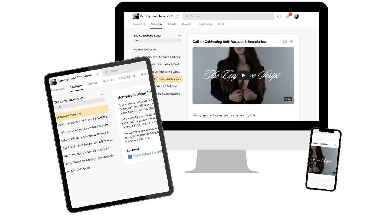 The Confidence Script is an in-depth program designed to help you build unwavering self-confidence from the inside out. Discover how to step into your full potential, remove all self-doubt, and live a life of bold authenticity and empowered action. Master the art of unshakable self-belief and script a life of boldness, power, and purpose.