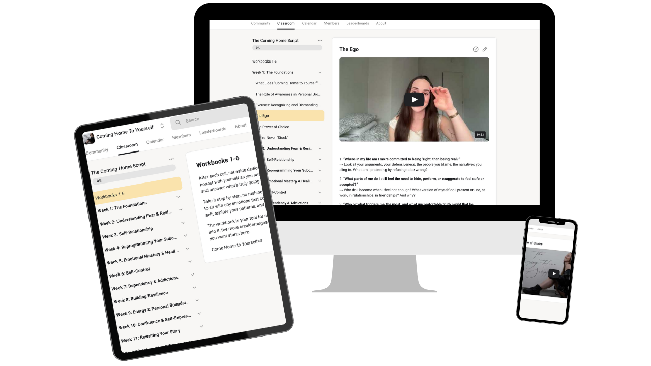 The Coming Home Script is a deep, transformational program focused on fully embodying your highest self and living in alignment with your true essence. Learn how to reconnect with who you are at your core, operate on high frequencies, and attract the life you desire with authenticity and confidence. Return to your true self and embody the highest version of you; unapologetically, unconditionally, and powerfully.